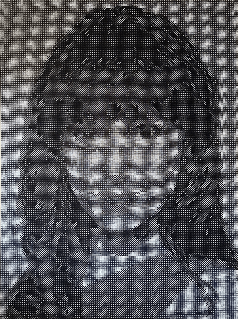 She has been declared the most beautiful woman in the Netherlands in 2024, and she could not be missing from our series. Her portrait is made from 17.000 dice and is 150 cm by 112 cm in size (without a frame).